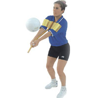 while performing a forearm pass. Durable elastic bands are attached